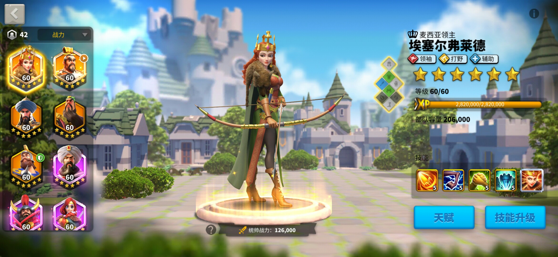 统帅战力通过你召唤统帅的数量,等级,星级来获得提升。在提升其他战力的同时,可以派遣统帅在野外击杀野蛮人完成支线任务并获得经验。