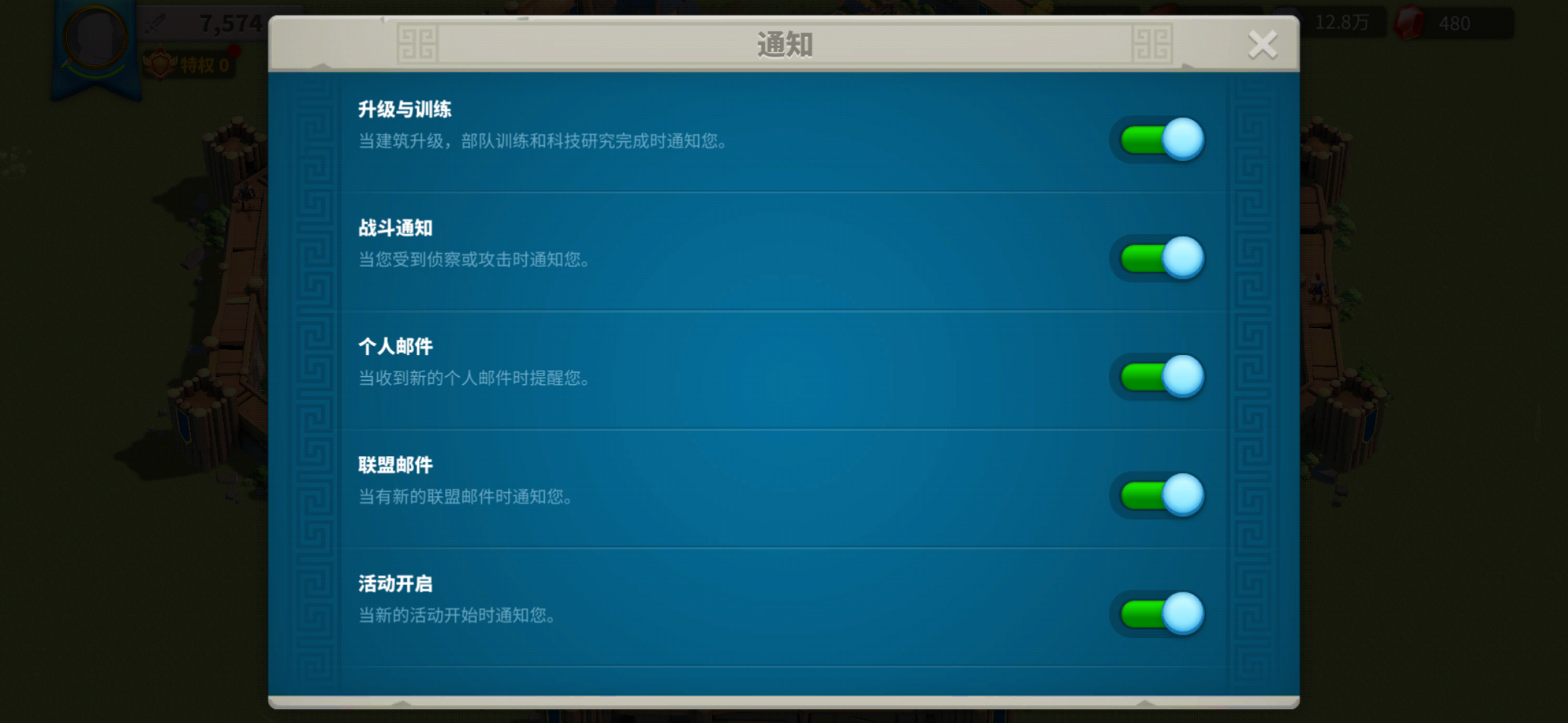 一、点击头像,在设置-通知中找到第一个升级与训练,把它打开。这样每当你的队列闲置你的手机都会弹出提示,避免更多的时间消耗。