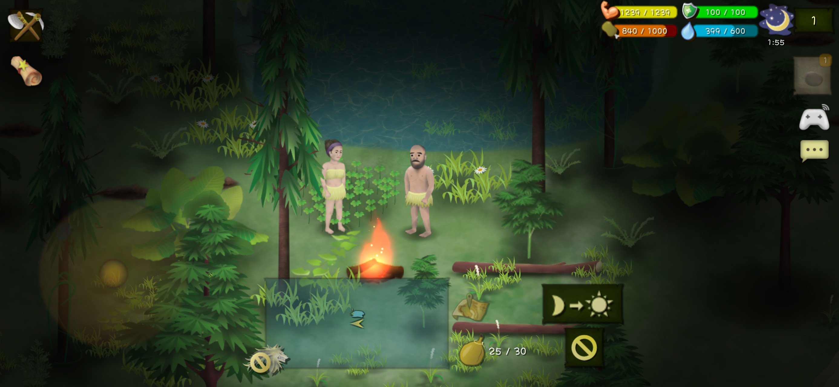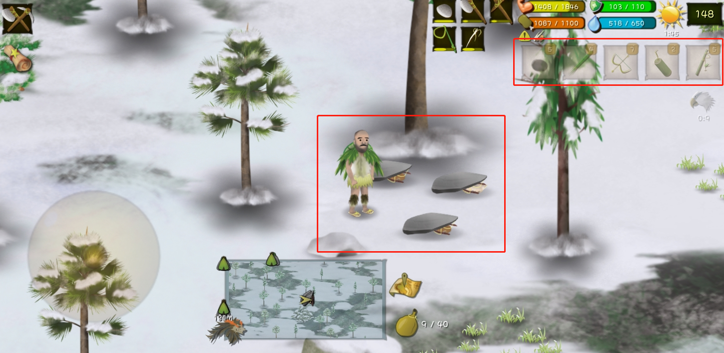 1000的饥饿值看起来是有很多,但是对于第一次玩这游戏的人来说,那就是生存三天的量,找不到一些大数值(野鸡、兔子、鹿、狼)的果腹食物的话,光靠吃蘑菇和茭白可撑不住多久。