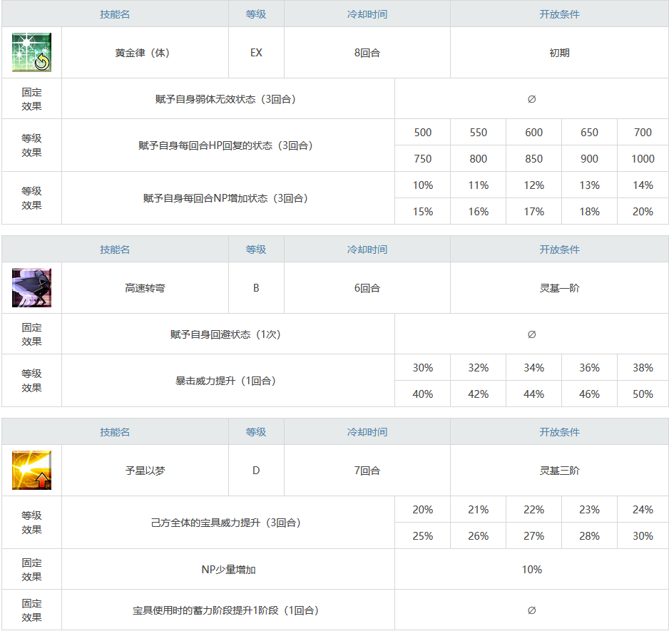 三技能予星似梦全队充能10np,全体宝具威力提升和宝具oc效果上升一个阶段。