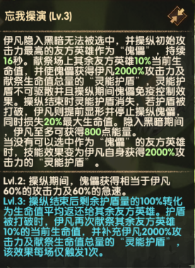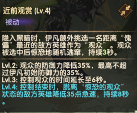 释放大招后,额外选择一名距离“傀儡”最近的敌军作为“观众”。敌军受到恐惧效果且降低35%防御力。