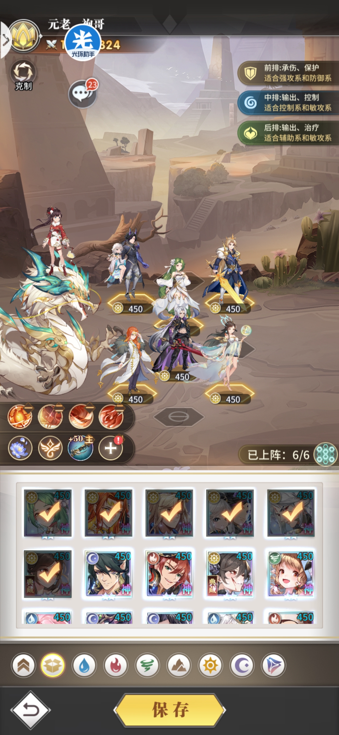 打这个阵容大家都知道5光+神罚,能不能过跟主营关系大,还有一定运气成分