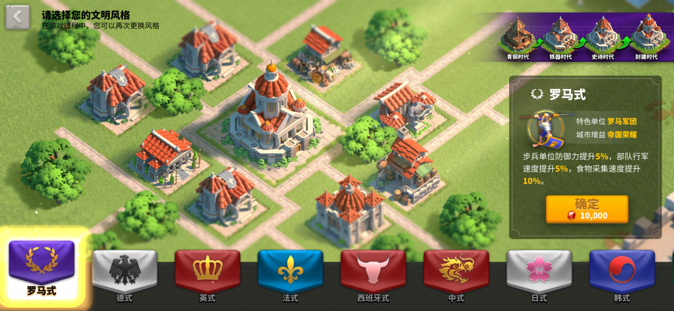 步兵单位防御力提升5%,部队行军速度5%,食物采集速度提升10。