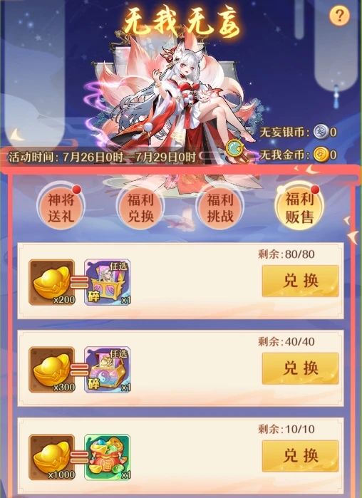 我们可以在节日贩售里面购买80神将碎片和40法宝碎片。