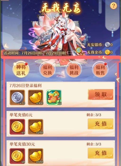有充值红包的建议搞一下,毕竟天金神将的提升还是很大的。
