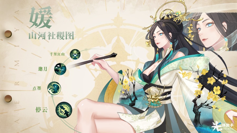 每13秒发动一次,在己方随机1个目标周边召唤画笔,画笔会画1个圆圈,持续4秒;若队友在此范围内,每秒回复50点能量和等同于自身145%攻击的生命,若敌人在此范围内,每秒减少30点能量
