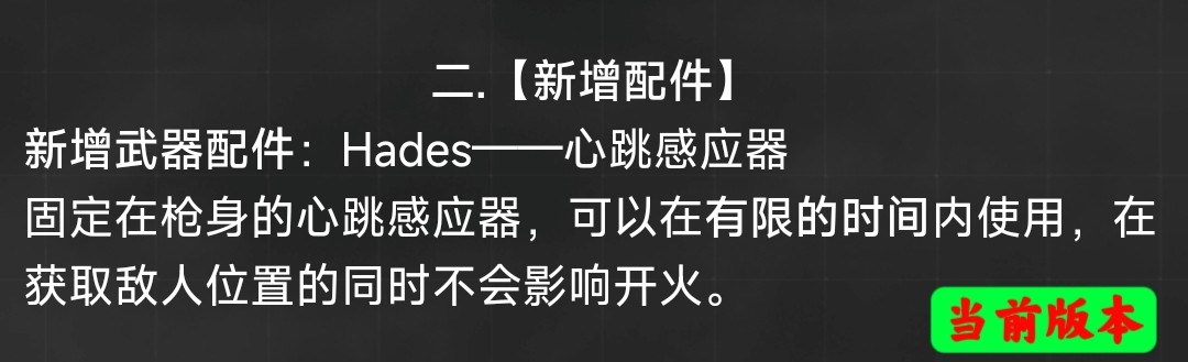 Hades作为一把模块化机枪的代表,可近可远可冲锋!而十字握把和速射枪管的加持在毒瘤-Choppe面前也一战!但由于0.9的基础超高受击上抬,正面作战实际体验非常拉胯!那么有没有解决的方案?有,那就是当老六!在本次版本中,CH似乎get到这一点,增加了新的下挂配件-枪挂式心跳感应器!这下幽灵、静步一带,老六狂喜!