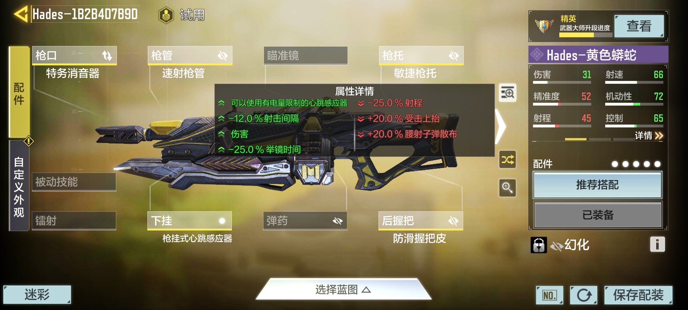 经过多次测试,老狼终于搭配出最舒服的枪械配件: 哈迪斯核心TTK选择速射枪管来将一段射程爆发提升到3枪致命!之后则选择特务消音器来给予消音效果的同时降低垂直后坐力,此时1段射程来到24米中距刚好覆盖!核心配件枪挂式心跳感应器当然强烈推荐!最后我们选择防滑握把皮大幅度降低镜时间!当然由于负面受击上抬的增加,需要给到敏捷枪托,以防止开镜变靶子!如果和老狼一样无法适应机瞄的话,可以将敏捷枪托换成红点瞄准镜也是可以的~这个配件有个最大的Debuff,容易拉仇恨,触发请淡定!