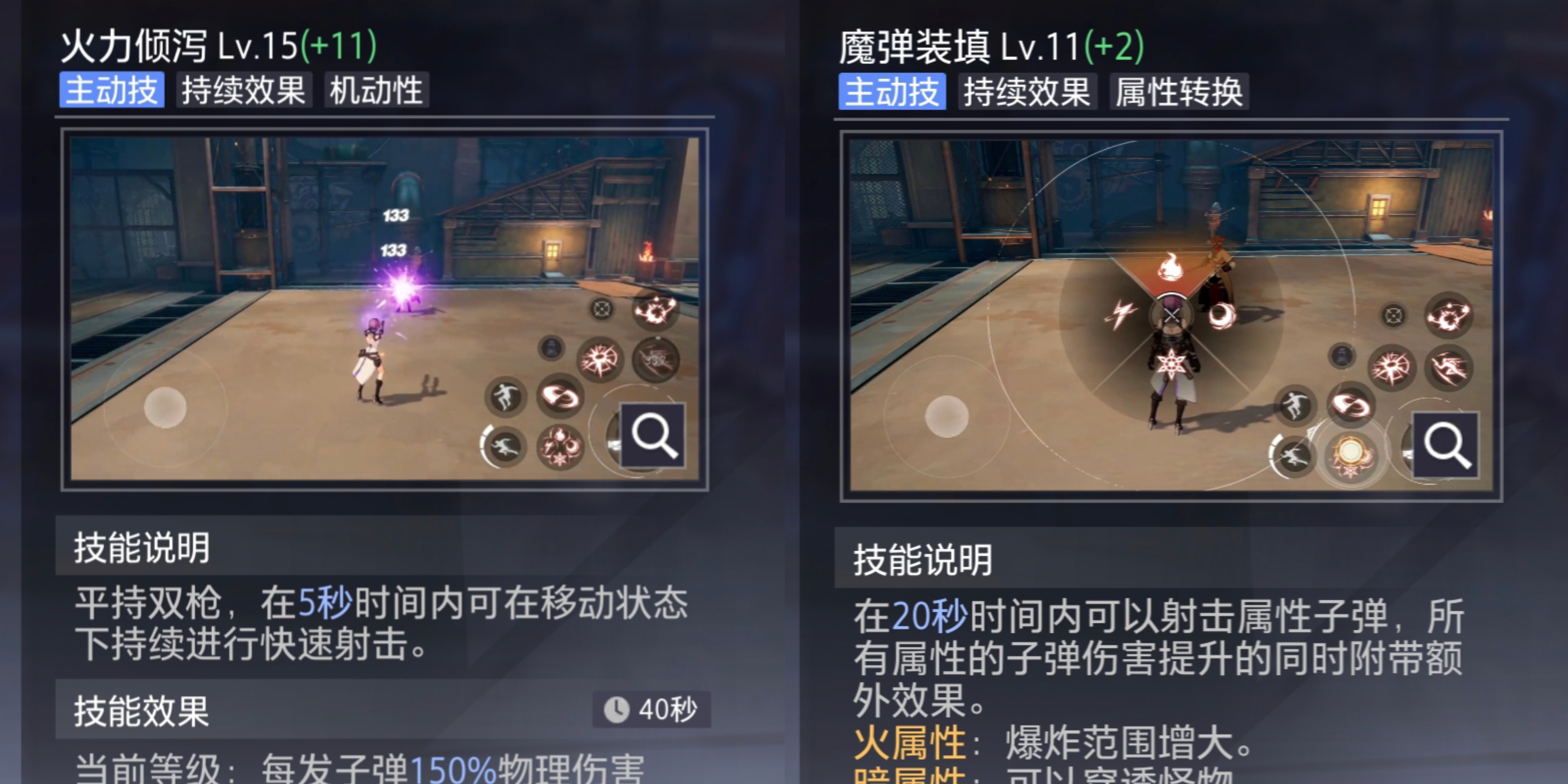 解析:魔道装填必须配火力倾斜,不然火力倾斜伤害很低。暮色追击+魔弹可以快速接近打伤害同时拉开距离的效果。技能栏位置顺序具体按自己习惯去放。但是组合技就要放同个技能栏搭配。