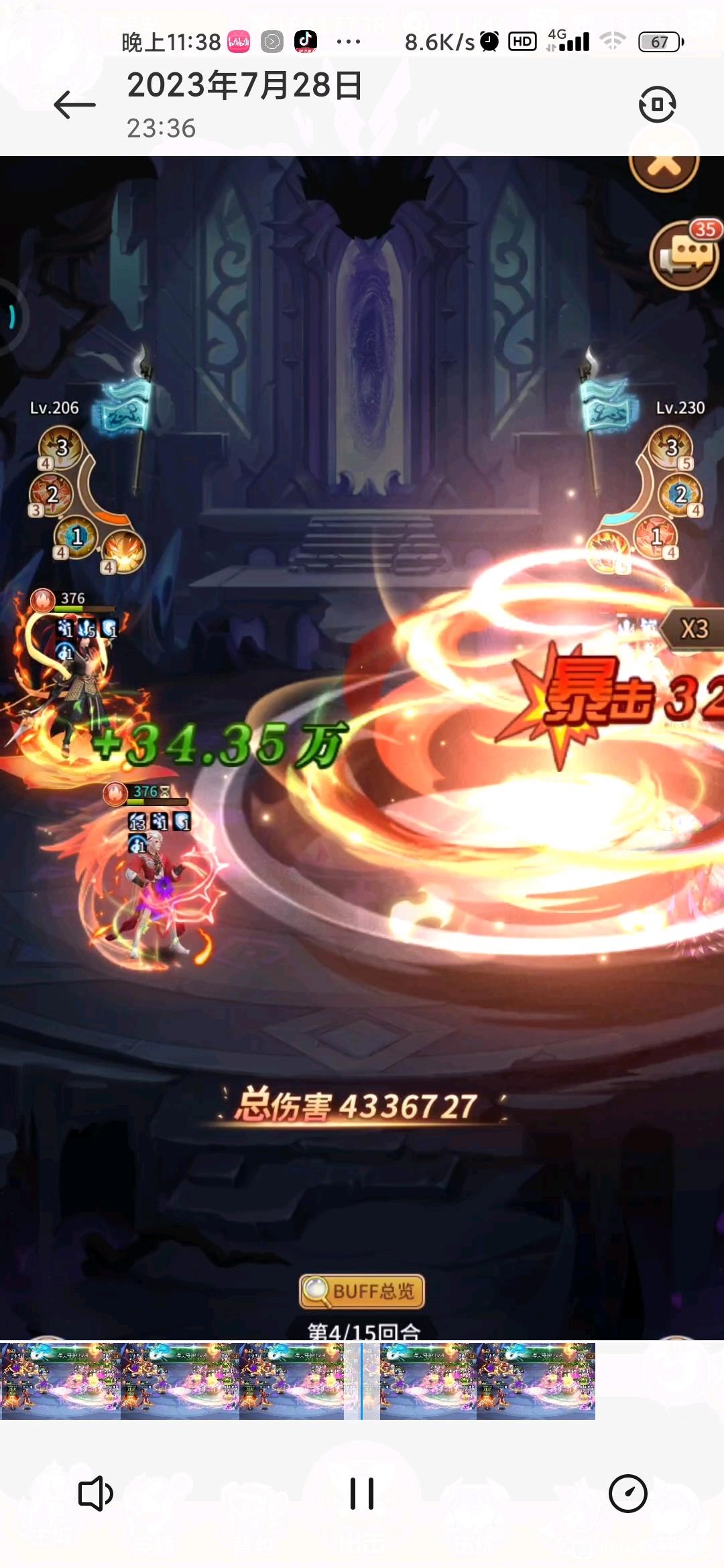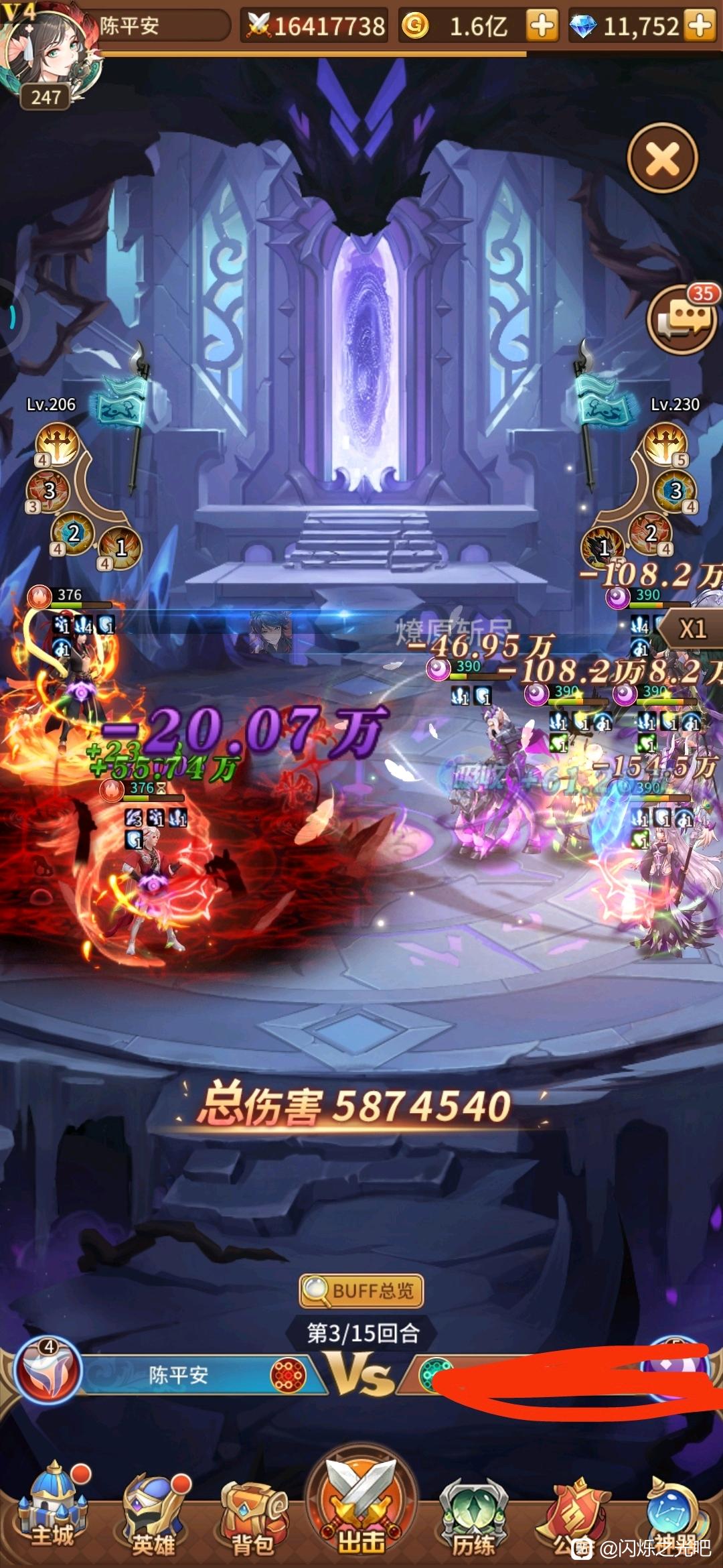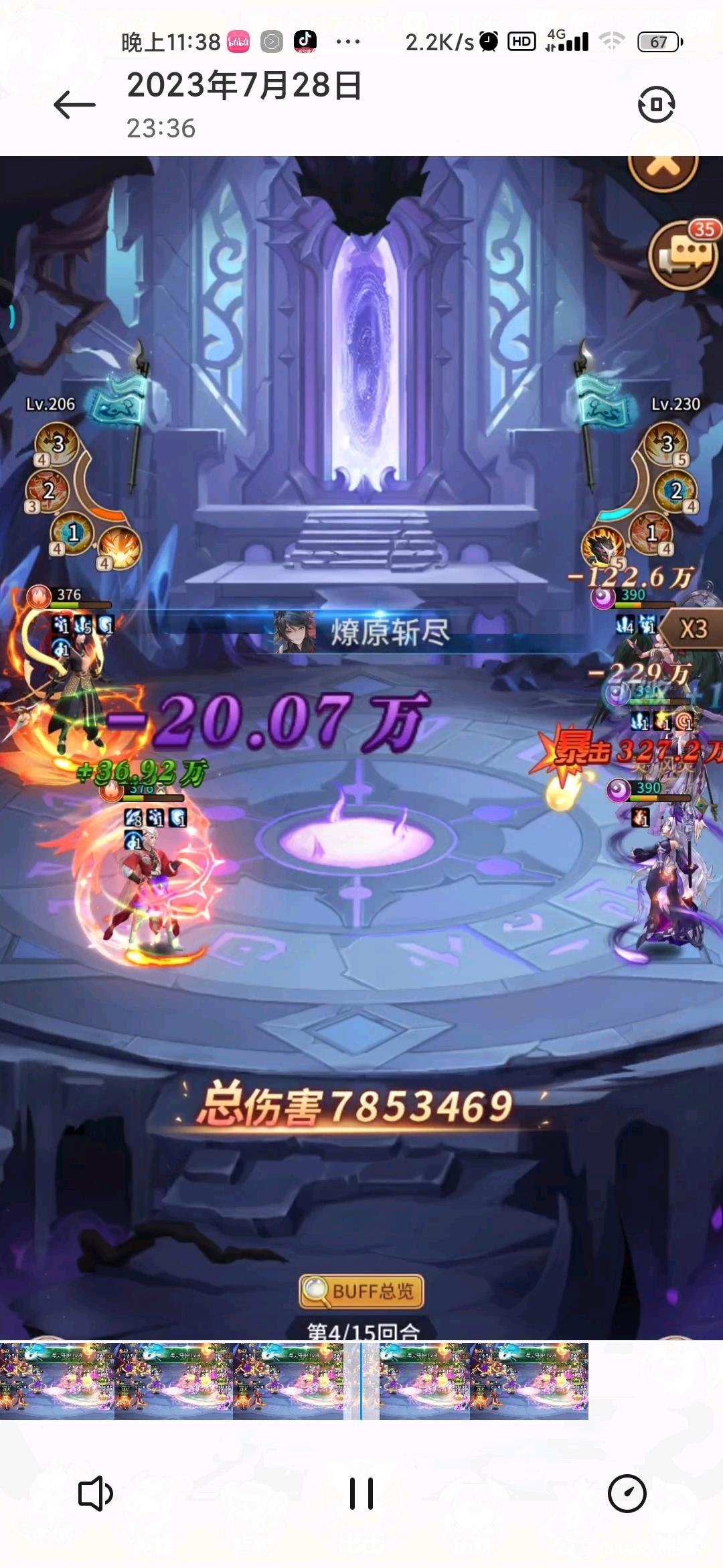 再说伤害看图吧,我这是第3回合变身的,可能早点变身会伤害多一点,再晚一点哪吒都要杀完了,符文没升星耀,还有点提升空间,升了算半个毕业吧