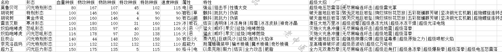 超级招式,种族值等☞资料图
