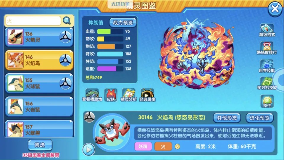 另外还有悠悠岛形态的火焰鸟