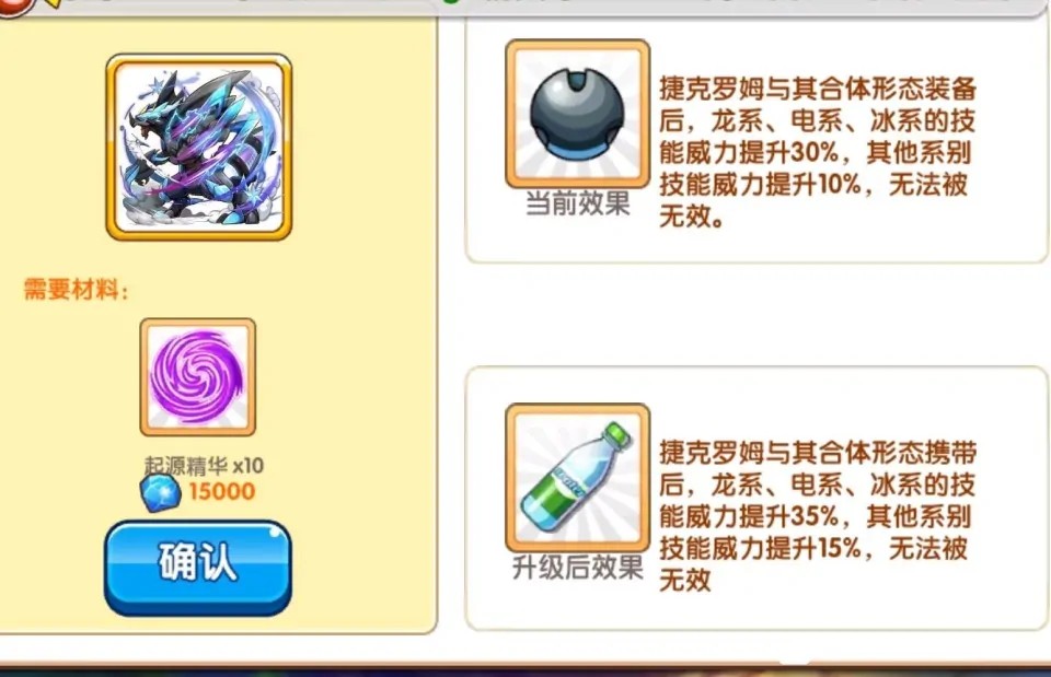 黑暗宝石:捷克罗姆与其合体形态携带后,龙系、电系、冰系的技能威力提升35%,其他系别技能威力提升15%,无法被无效
