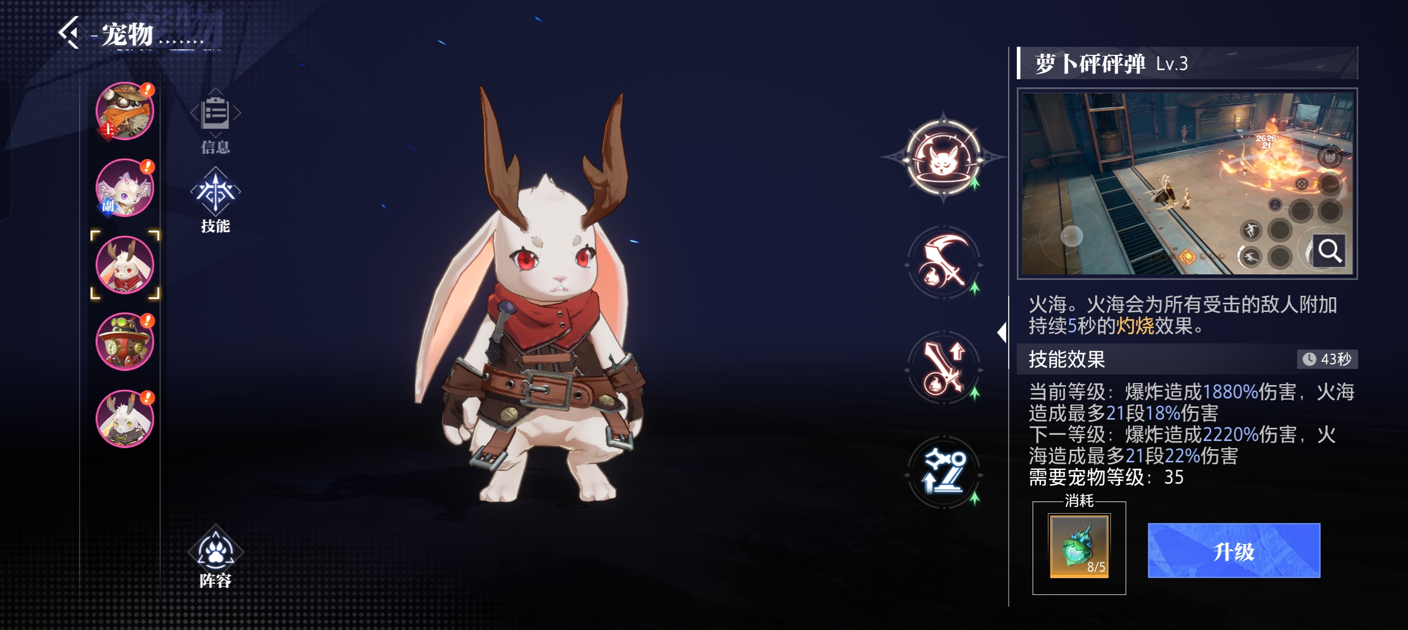 ①【助手鹿兔兔】:不推荐培养,前期可以带带,属于过渡型宠物。