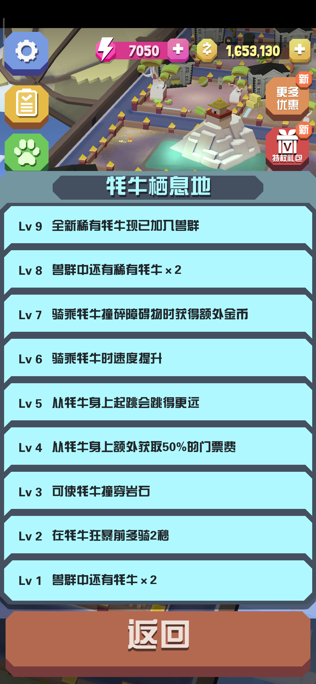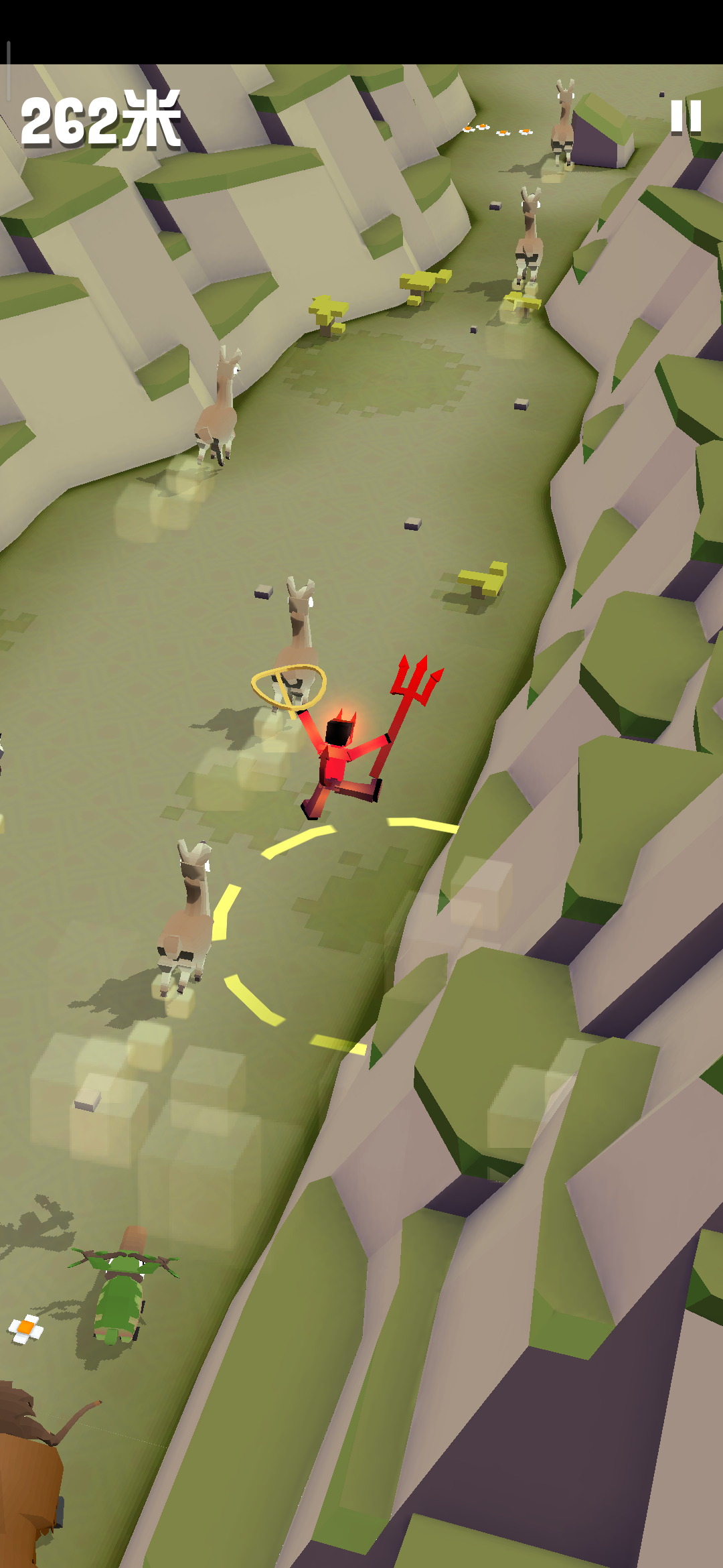 牦牛的奔跑方式就很出奇,一蹦一蹦的,就跟野牛野猪狂暴之后,不过好在玩家升级栖息地后牦牛可以撞破所有在跑道中出现的障碍物和动物,而且牦牛就算贴着山壁跳也不会撞倒,当然这只是在我们没有操控牦牛直勾勾的撞上去的情况下,如果直接撞上去还是会撞倒的,所以玩家操控牦牛在山脉中需要注意的就是山壁和悬崖。