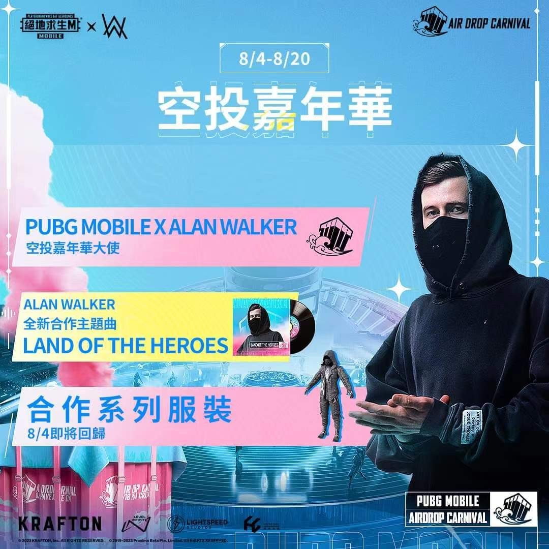 空投嘉年华的主题曲《Land of the Heroes》将加入《PUBG MOBILE》。
