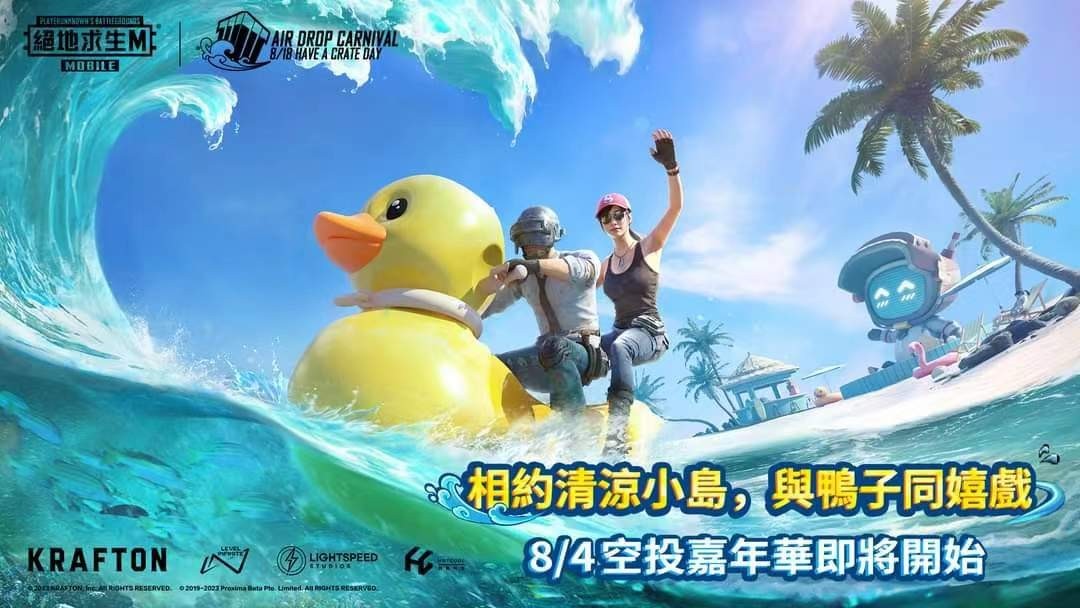 全新的空投嘉年华双人载具"鸭子船"🐤 和欢乐的 "清凉小岛" 将于8月4日登陆 Erangel(艾伦格)、Livik(利维科)、Nusa(努山)和 Sanhok(萨诺)地图,有许多令人兴奋的游戏玩法等待着各位去探索。