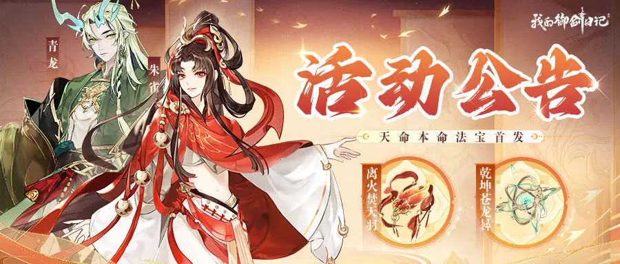 强力天命本命法宝·离火焚天羽&乾坤苍龙晷限时登场!活动期间相关道具概率将大幅提升!