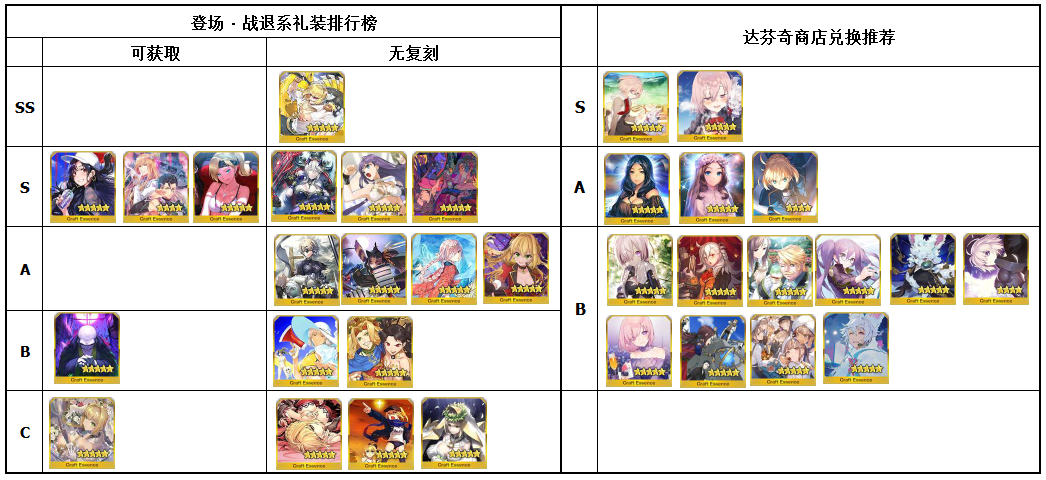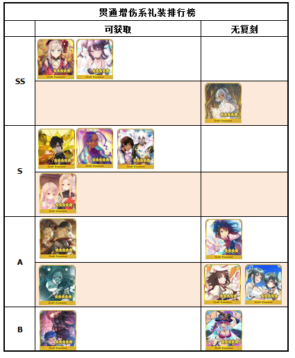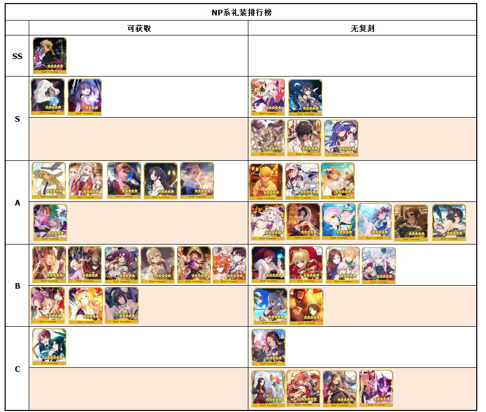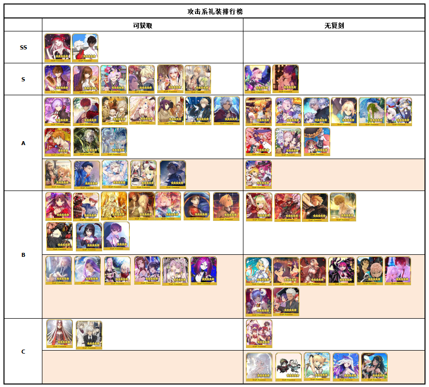 这次变动最大的应该是这个榜,增加了SS级的排行,且SS级这两张礼装,是真的好用。