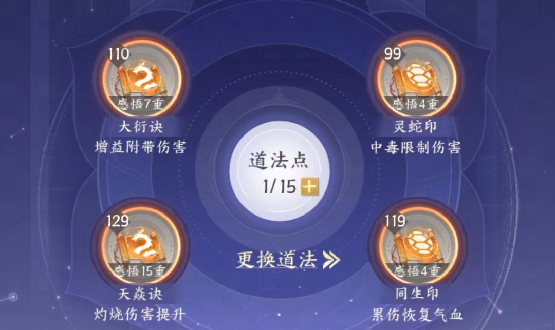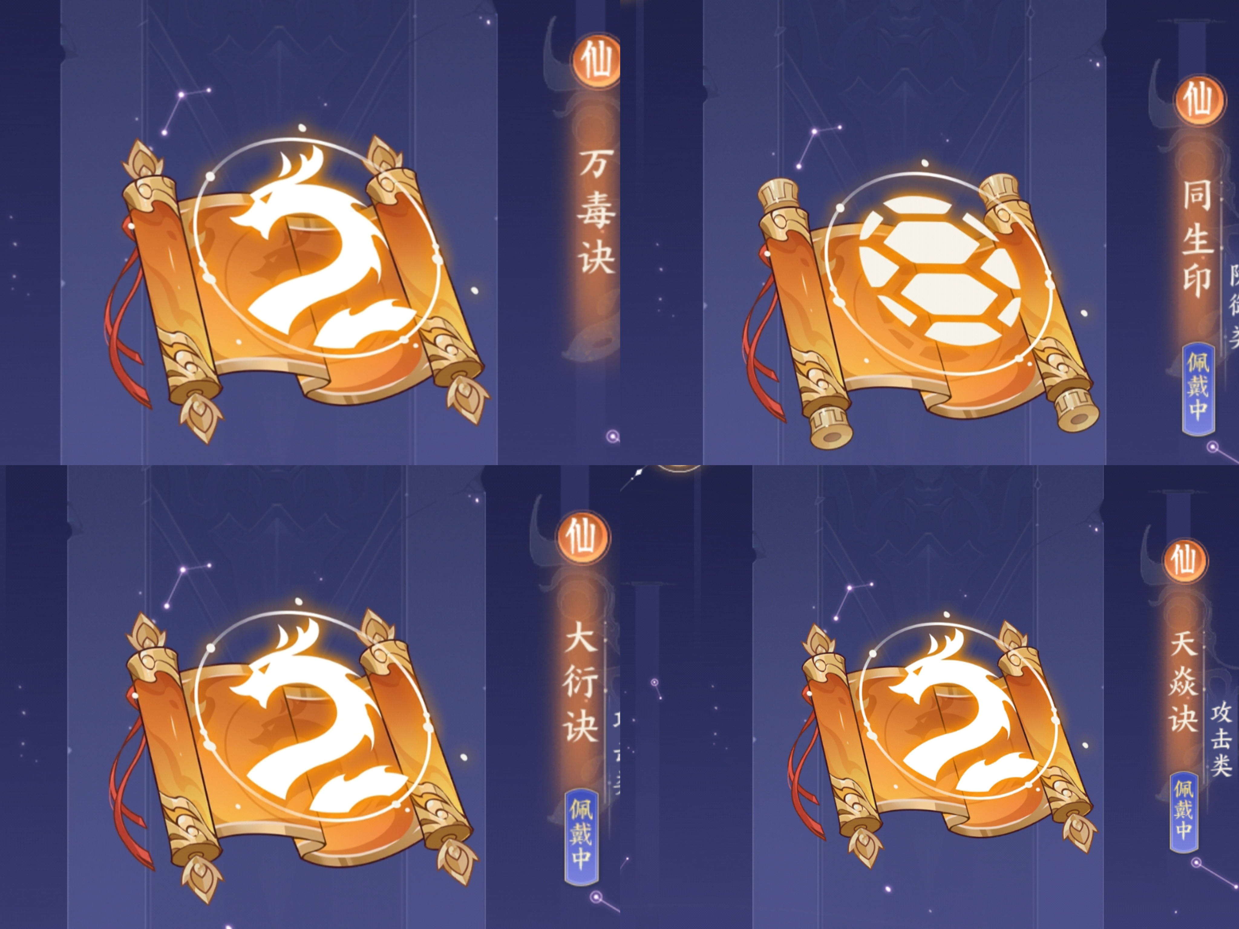 ⭐此外2层的【降龙决】和【沧浪决】为备选道法书。优先考虑【天焱决】+【大衍决】组合。