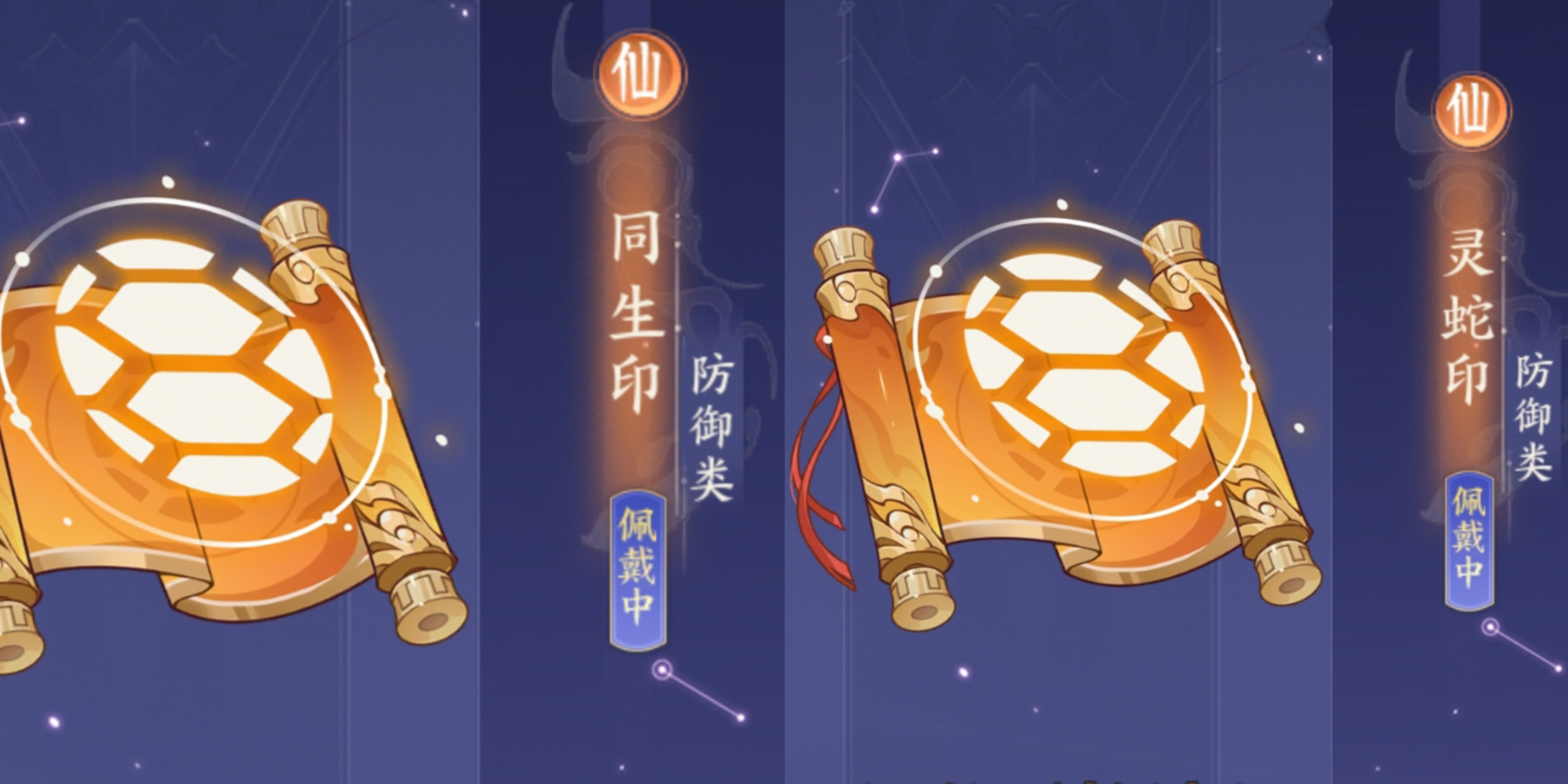 解析:灵蛇印对比赤阳印更稳定一点。因为灵蛇印可以搭配玄武,灵蛇印效果是中毒恢复生命效果。玄武的中毒效果实战会比朱雀的灼伤效果更稳定一点,朱雀50%的几率灼伤,朱雀+赤阳印比较吃运气。