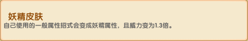 这样一来就把假动作,神速,珍藏等一系列技能变成了妖精系(本系)而且威力还加成1.3倍。带上小仙棒就会比较厉害了。