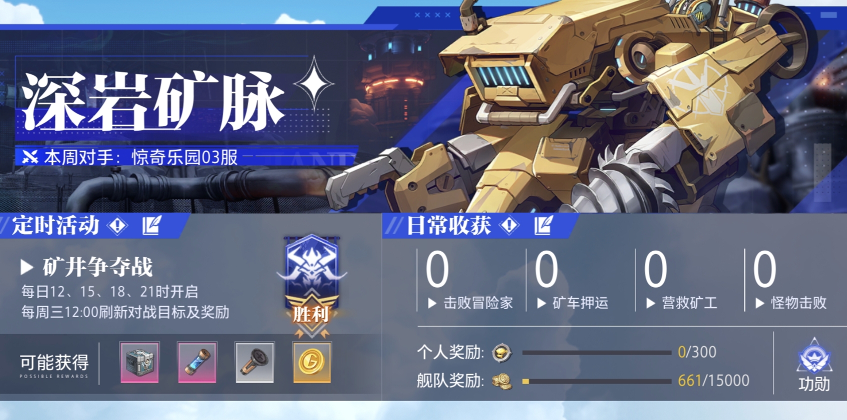 ①舰队里的【深岩矿脉】,大号每天必做,可以获得圣物箱子和强化道具以及金币。