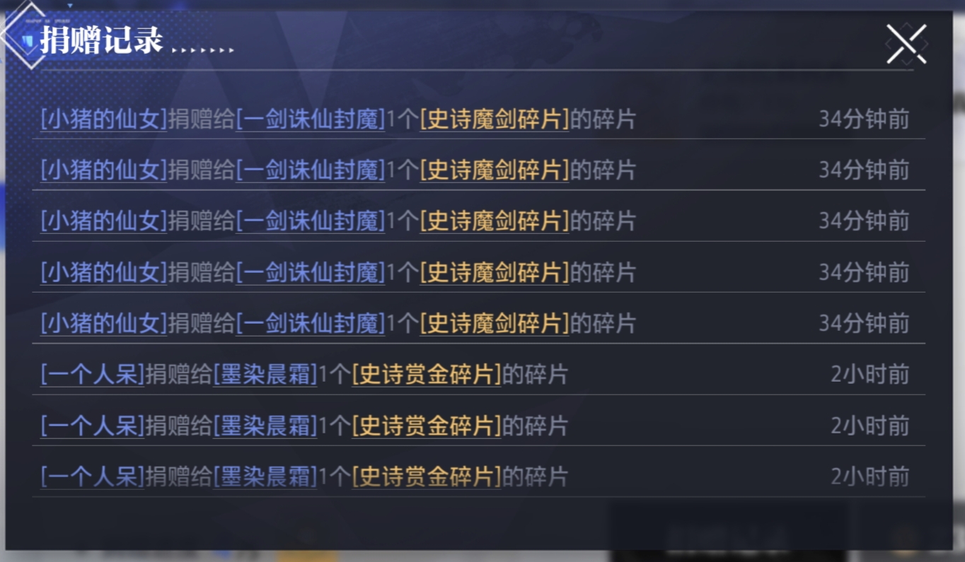 ⑦舰队每天都可以免费互相赠送【史诗碎片】,这个每天都要去互送,可以帮助我们更快获得毕业装备。