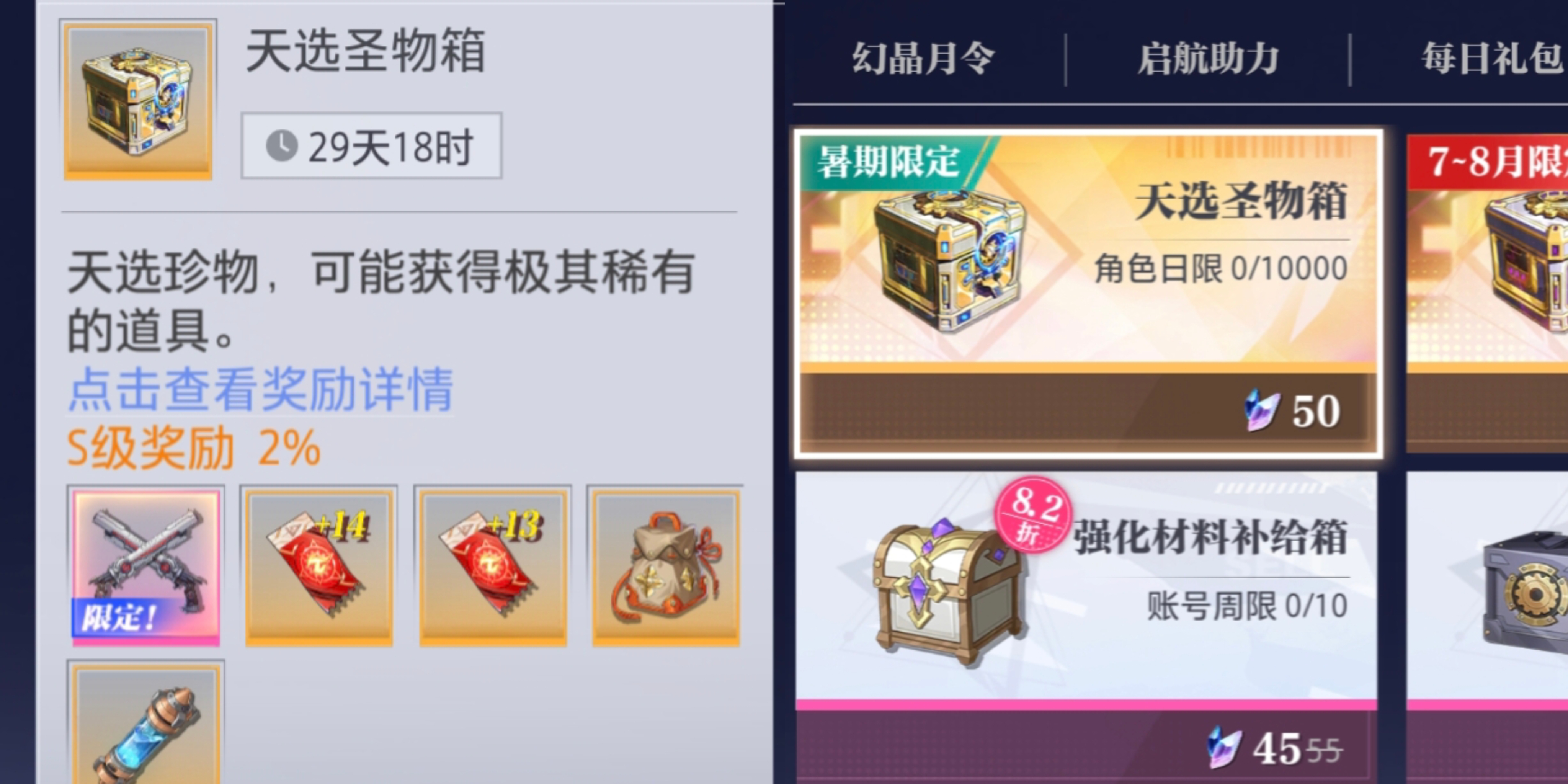 这2个箱子前期有很多玩家都会通过大量氪金去开,也是前期很多玩家会浪费很多资源的地方。首先【天圣生物箱】可以开,里面的资源都很有用。