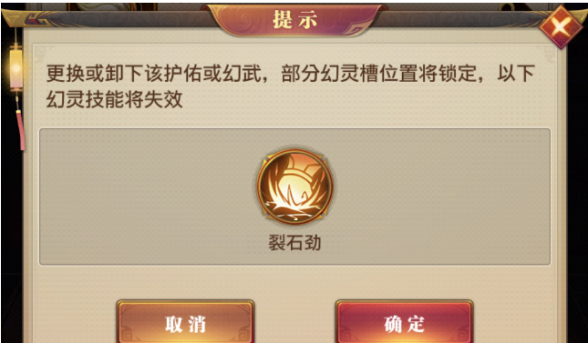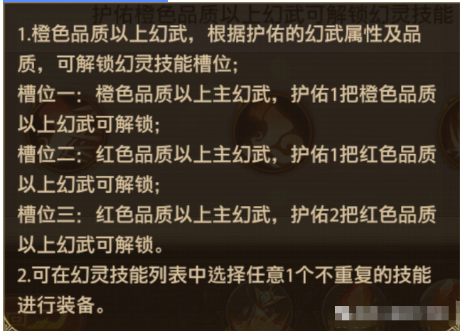 主幻武和护佑幻武的品质还决定了能装备的幻灵技能的数量,更换护佑幻武时会导致幻灵技能槽位清空或锁死。