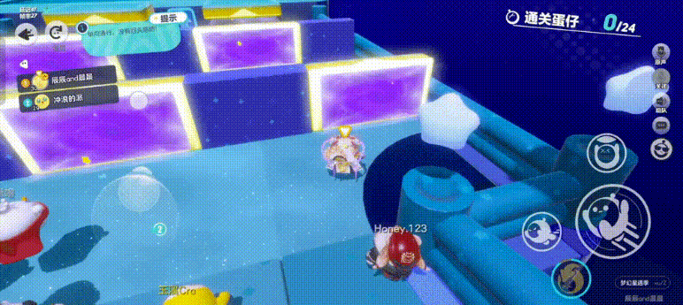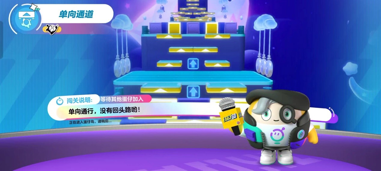 迷宫会从简单逐渐复杂,再加上很多蛋仔都挤在一起,后期很容易撞墙。而朝上的单向通道会不断旋转,一旦没把握好位置,掉下去就要重来了。