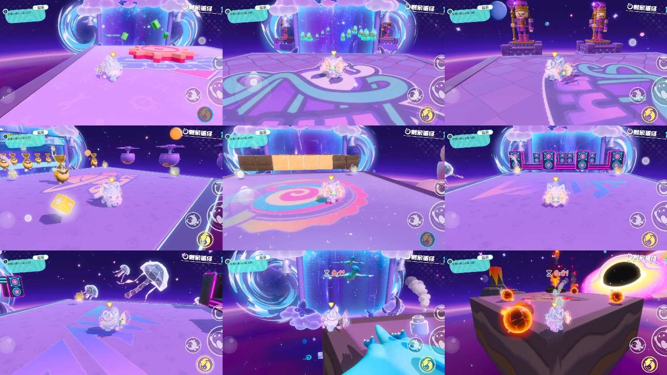 说实话这个地图对老玩家来说,算是一波回忆杀了。仔细看飘出来的障碍物:第一赛季的齿轮和箱子,第二赛季的旋转木马,第三赛季的胡桃夹子,第四赛季的魔鬼蛋手持奖杯,第五赛季的蛋糕,第六赛季的脆糖,第七赛季的音响,第八赛季的水母,第九赛季的翼龙和火球。