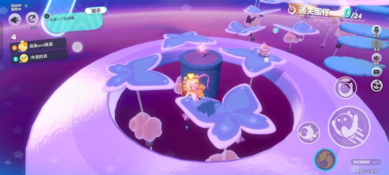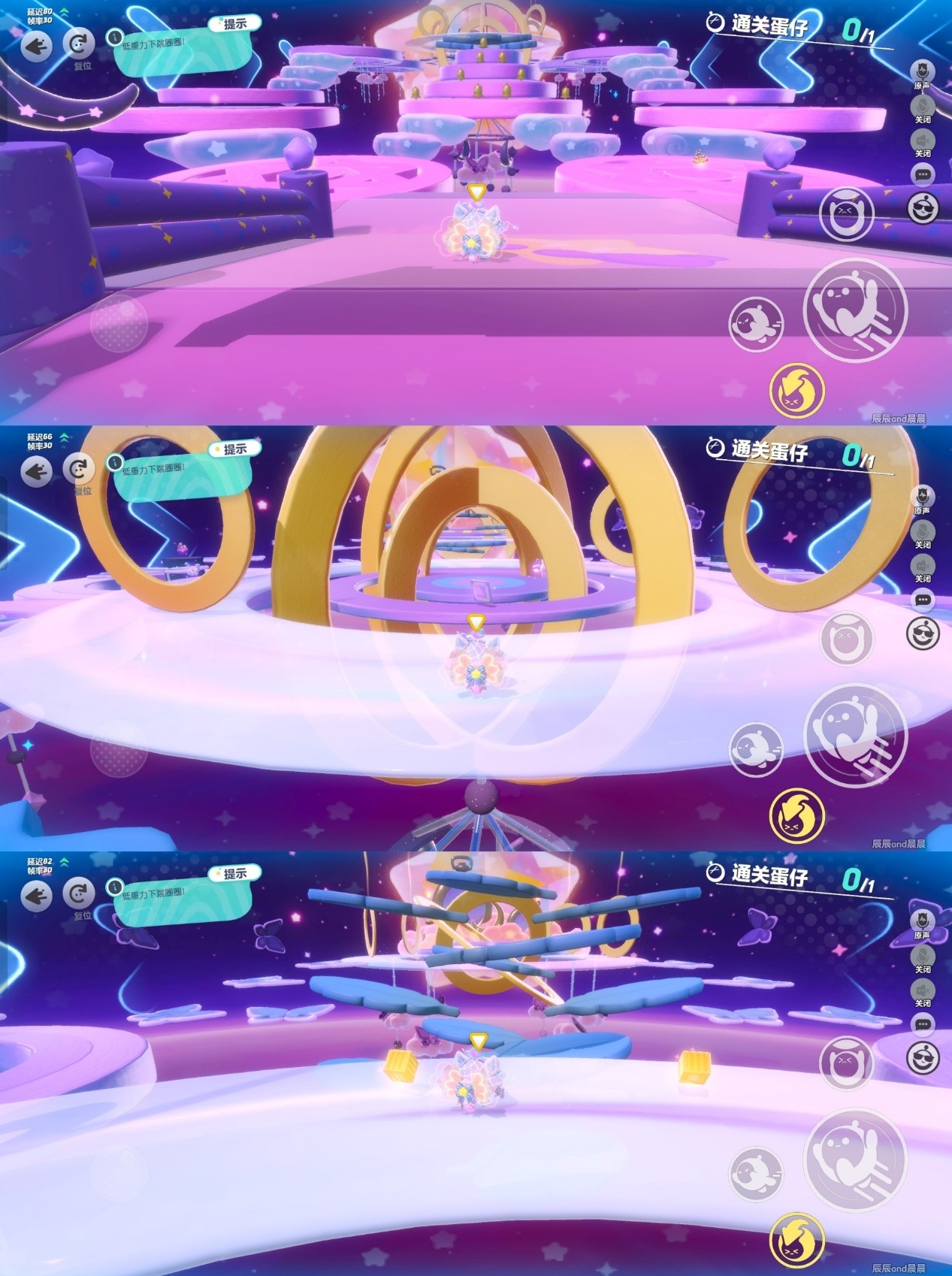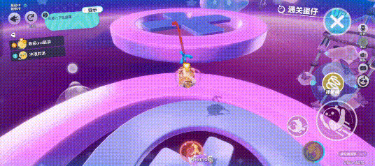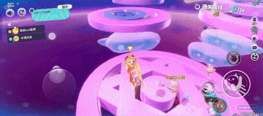 平台与平台之间有间隙,有些圆台自身也有较大的缝,注意别掉下去了。还有一些移动的障碍物,碰到会弹开一段距离,和之前的图有点像,记得躲一下就好。