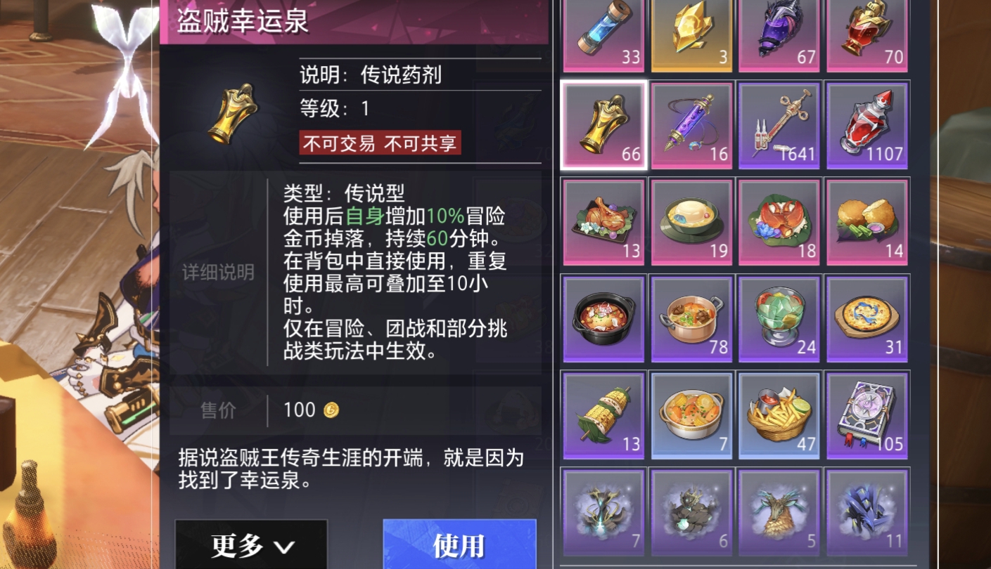 这个药可以提升10%的金币加成,同时1个药持续1分钟,这个药很关键,可以大幅度提升金币获取率。