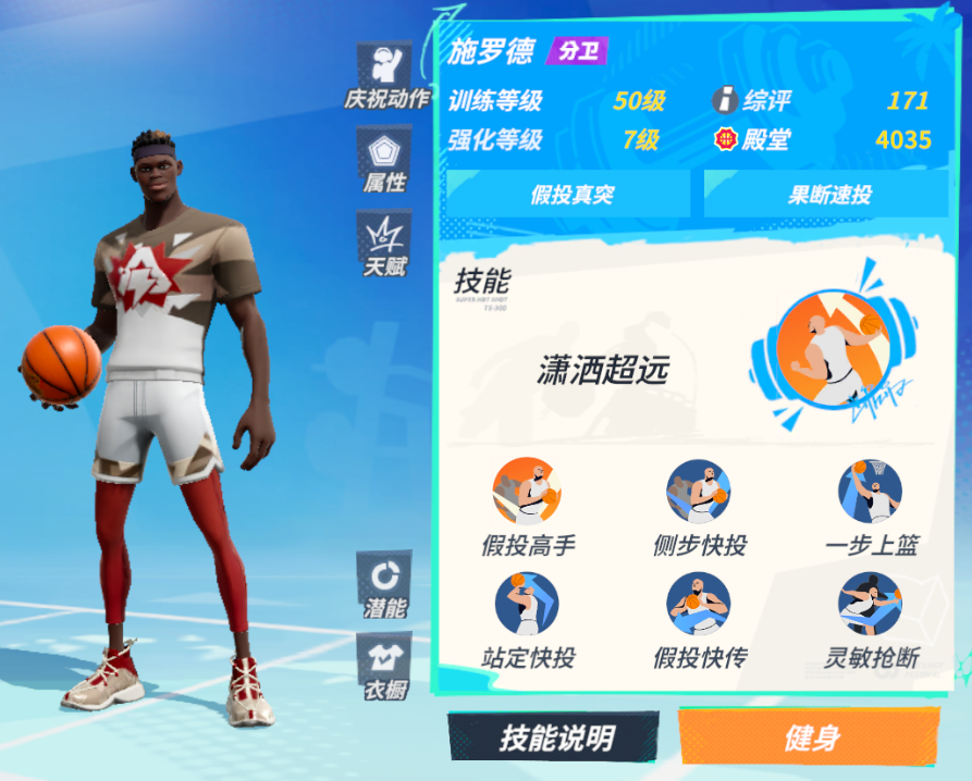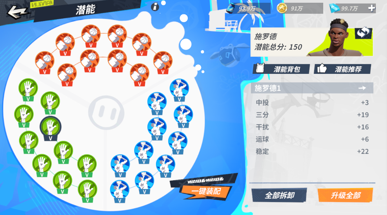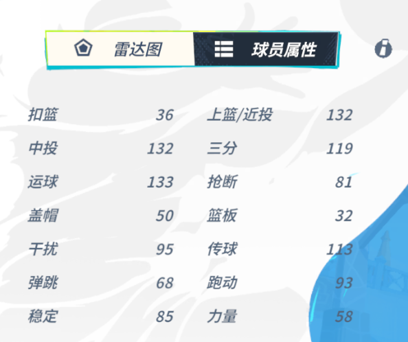 该潜能主要是提升施罗德的中投得分能力,同时强化了持球时的运球能力以及防守端的干扰能力。