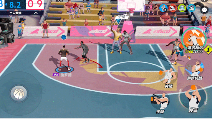施罗德的得分技能。持球进攻时,快速侧步,随后合球投篮。只要能与防守方快速拉开一定距离,该技能就会相对容易得分。