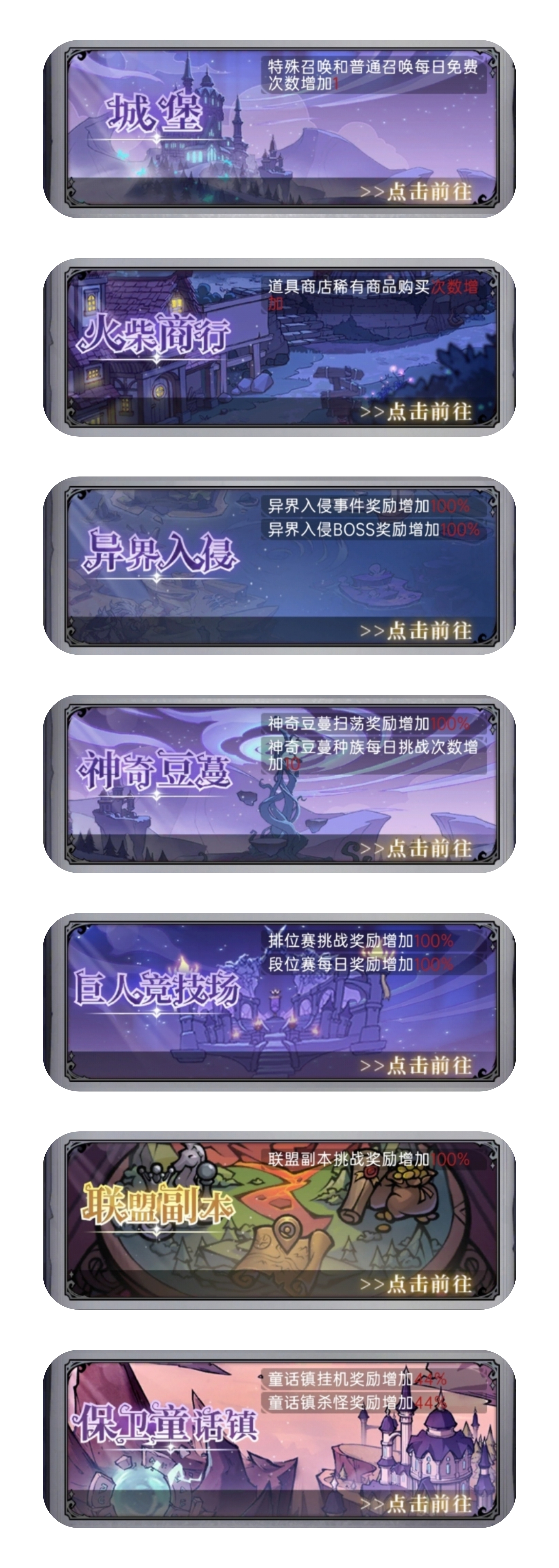 (你处于前期时候的快乐国)、(后期艰难提升核心时候的国王大街)、主题活动