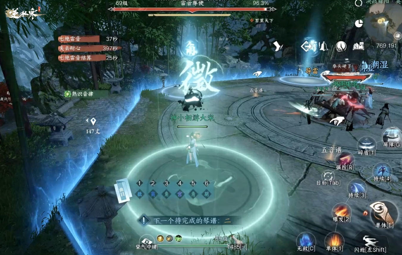 1、 进入琴谱后,在【七绝雷音结算】倒计时结束之前,已经进入琴谱的玩家不能离开五音圈!否则会直接判定为失败。