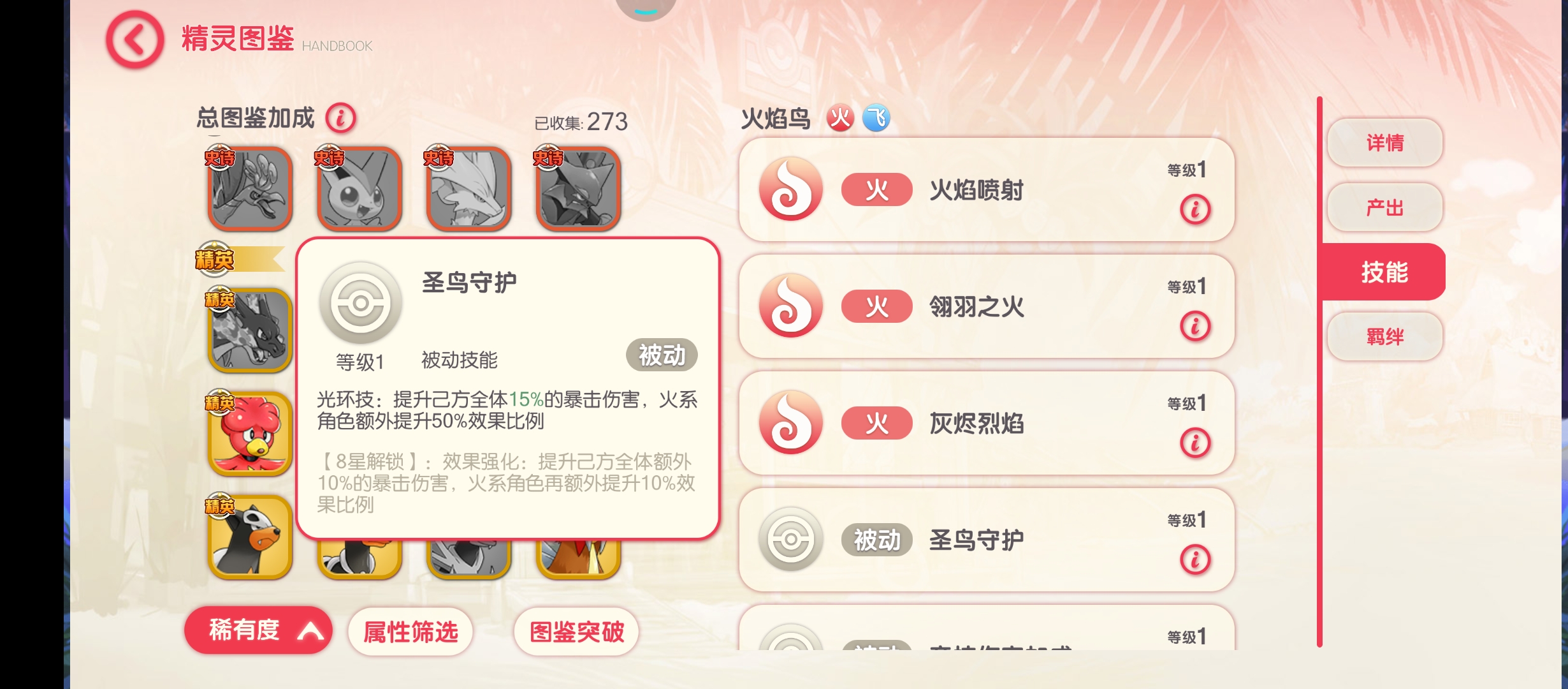 前面提到的班吉拉斯在石英大会获取碎片,也是比较热门的精灵。火焰鸟也是值得拥有的,尽管对火系精灵加成大一些,但搭配螳螂也是不错的。