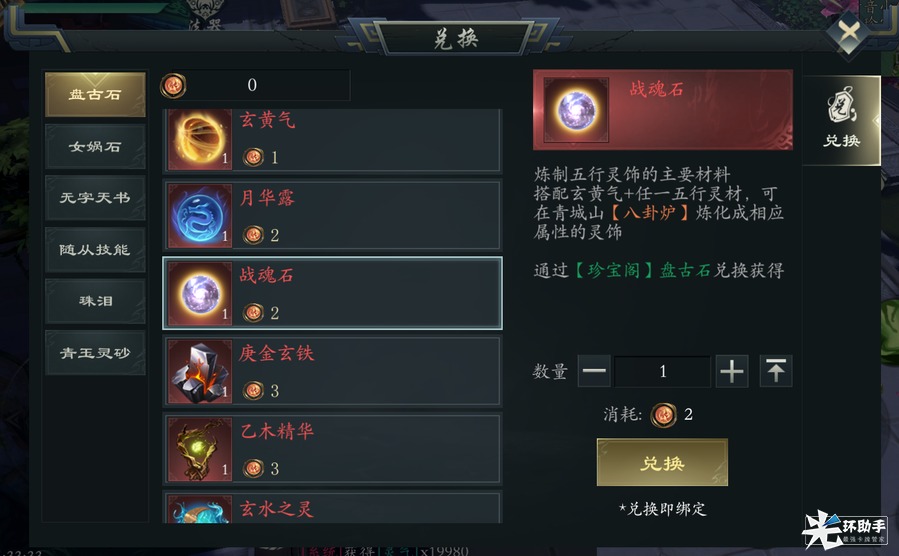 青城山兑换商人处,使用盘古石兑换上述对应三种材料之后,前往八卦炉处,即可合成。