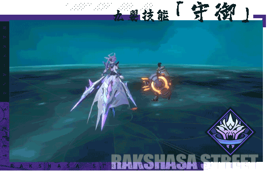 技能【守御】,九婴化作冰盾缠绕于罗绮雪·雪王身旁,为其提供霸体和一定伤害减免,在持续时间结束后还会将冰盾引爆,对周围的敌人造成冰属性伤害并叠加一定的冰冻值;