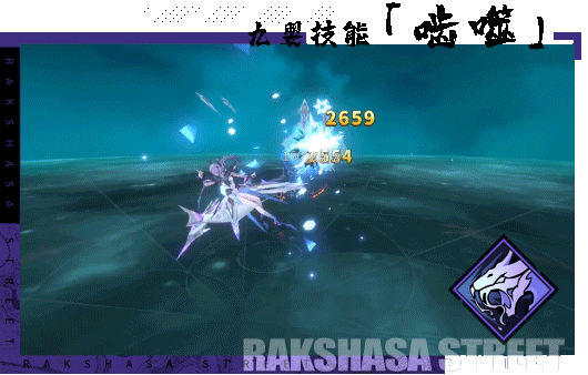 技能【啮噬】,九婴从虚空中突袭,以迅雷不及掩耳之势发起攻击,给予敌人大量伤害并获得一定浮游炮能量;