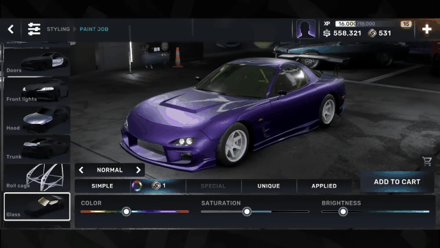 新定制功能上线,可进行车身颜色定制、内饰定制、车灯定制,以及车窗玻璃定制,同时还可以为你心爱的赛车进行悬架定制、改变尾部喷气颜色等。