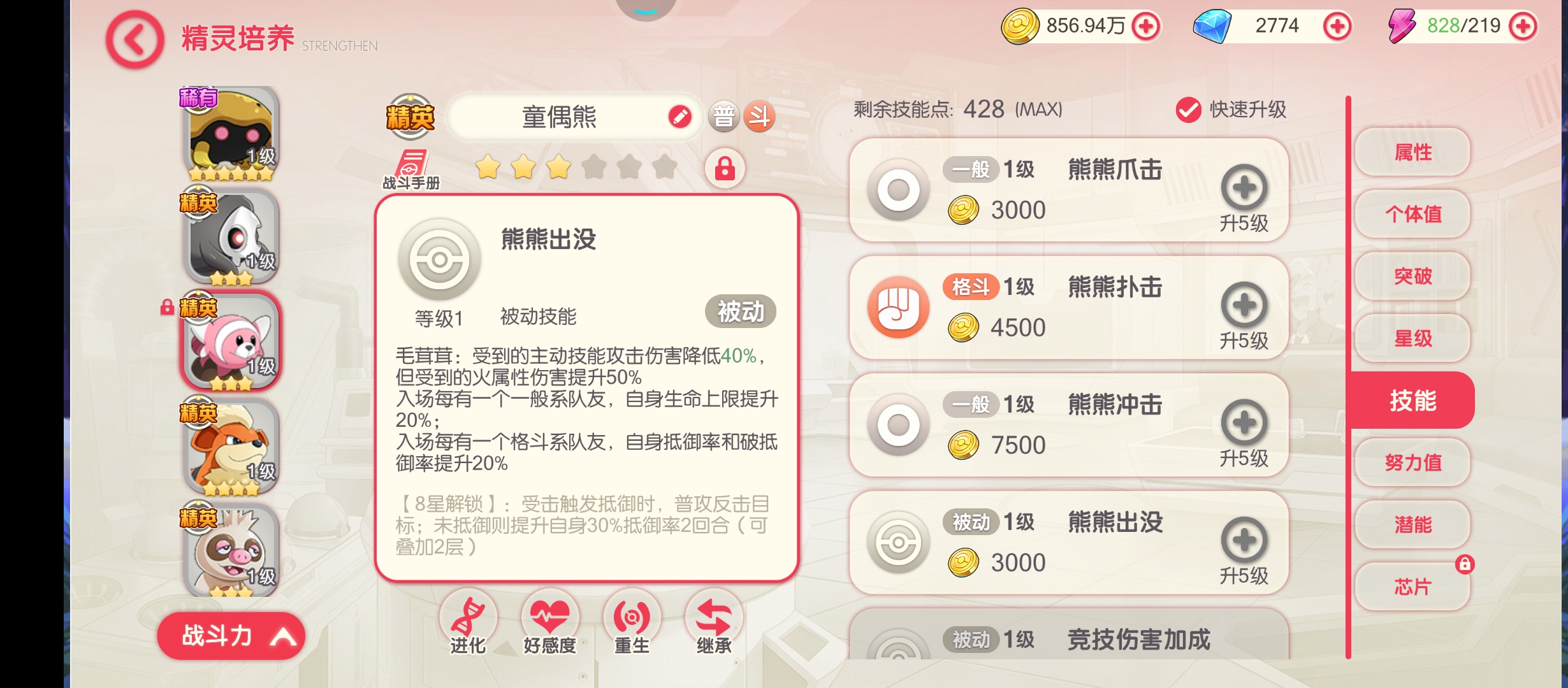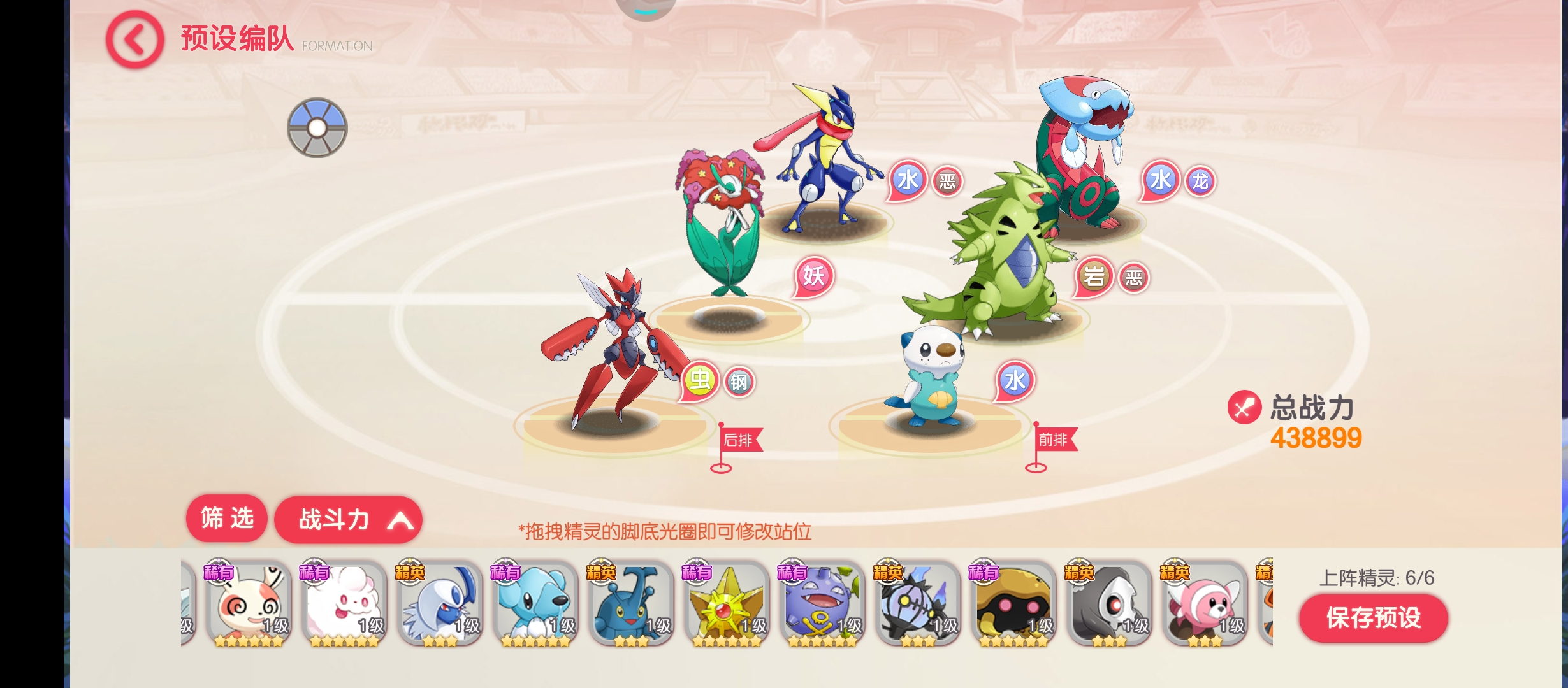 以下三张阵容图是在V3/V4的情况下培养的精灵。这个出了鳃鱼龙是夏日祭能获得的之外,其他的精灵或多或少星级都会高一点,也是最大程度上能适配的大部分玩家。