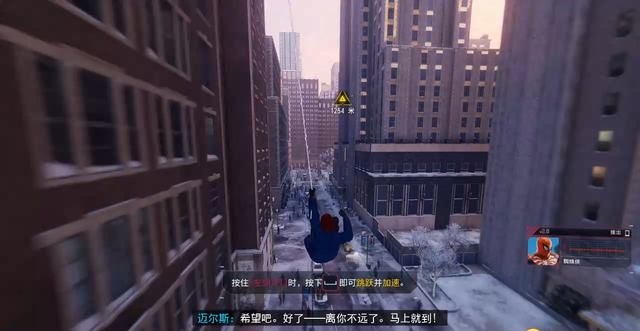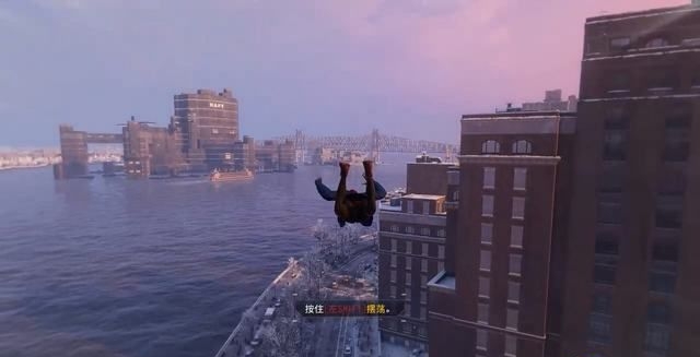 正式开始游玩,与前作一样,按下“Shift”键即可在楼宇间摆荡。