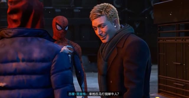 将犀牛人擒住后,本作中的重要角色——西蒙·克里格粉墨登场,作为新能源公司首席的他似乎并不排斥蜘蛛侠这样的“超级英雄”。
