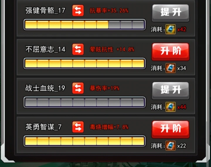 解析:受到能量及攻击提高自身的特伤减免30%两回合,最高可以这个是可以叠加的,只要主力放在后排的话,这样可以吃到150的减免。但是这个是特商的界面,物伤的话也就看自己来修一修。