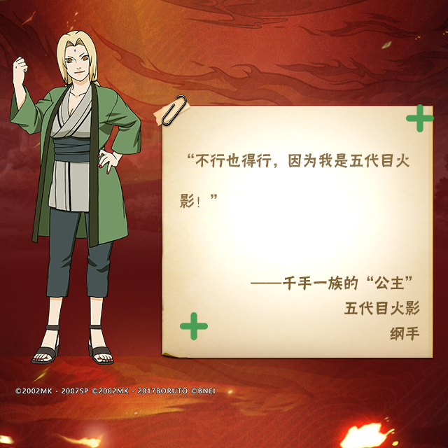 纲手大人既继承了火影之位,又传承了千手一族的血脉,她是如何看待这份羁绊的呢?这个时候纲手大人应该在火影楼,先去找她吧。