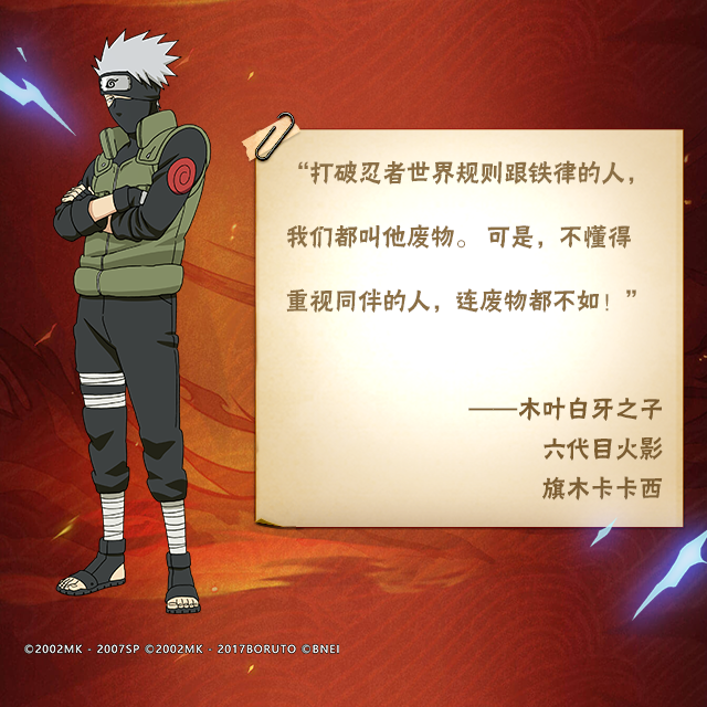 对于纲手大人来说,村子从来不只是单纯的责任。木叶是她的祖父建立起来的家园,她并不是以单纯的五代目火影的身份去守护,其中还包含着对祖父意志的继承。这份饱含亲情的羁绊,成为了推动她砥砺前行的动力源泉。卡卡西老师给第七班上的第一堂课,就是告诉他们同伴的重要性。不知道关于与同伴之间的羁绊,卡卡西老师还会爆出怎样的名言?