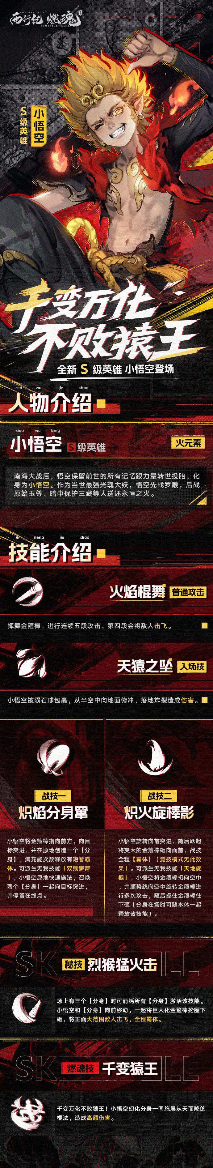 《西行纪 燃魂》新S级角色爆料!千变万化,不败猿王!光环-小Y发布于 2023-08-10关注西行原是骗局!南海大战后,悟空保留前世的所有记忆跟力量转世投胎,化身为小悟空。作为当世最强大妖,悟空先战罗睺 ,后战原始玉尊,暗中保护三藏等人送还永恒之火。这样一位又萌又能打的“小大圣”,即将于8月17日的「浴火无双」 版本降临西行世界!